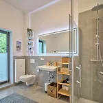A kertre néző Charmante Altbremer Wohnung I Wintergarten I Kuche I Balkon apartman szobái tartalmaznak erkélyt, kanapét és íróasztalt. Akadálymentesített zuhanyzó és külön WC találhatók a fürdőszobában.